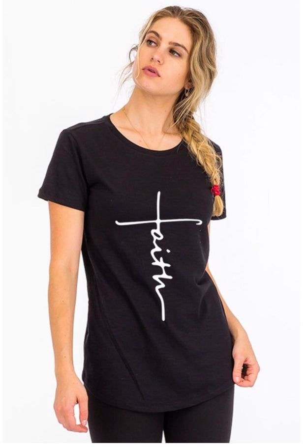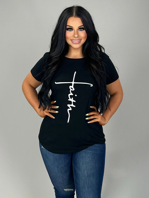 GT-F {FAITH} Solid Black Short-Sleeved Crew Neck T-Shirt