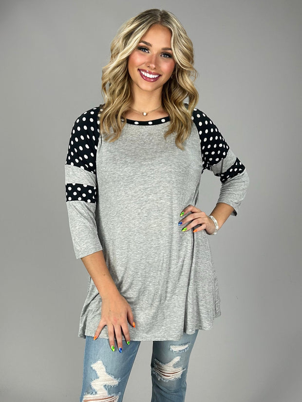 CP-G {Enough For Me} Gray/Black Tunic with Polka-Dot Sleeves