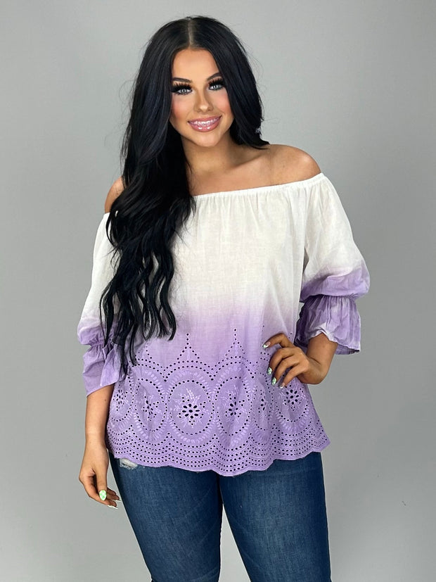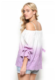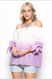OS-A {More To Explore} Lavender Gradient Dye Top with Eyelet Detail