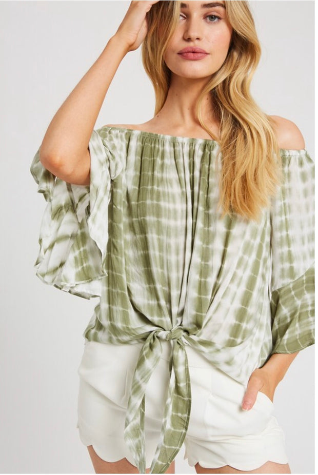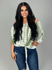 OS-W {Green With Envy} Circle Print Cold Shoulder Top
