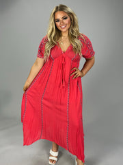 OS-N {Sassier Than Ever} Red Dress with White Eyelet Detail