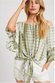OS-O {Just Remember} Floral Print Off-Shoulder Top with Belt
