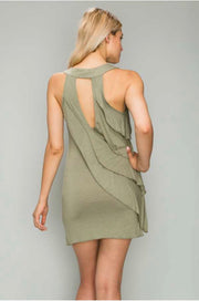 OS-L {Mint 2B} Cold-Shoulder Dress w/ Ruffle Detail