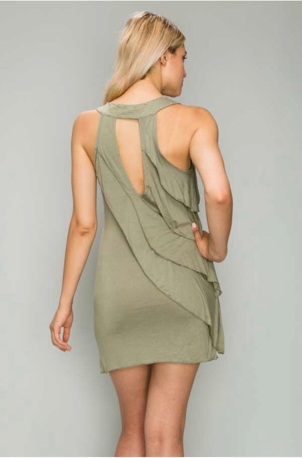 SV-C {Speak Up} Sleeveless Olive Top with Sequin Detail