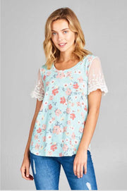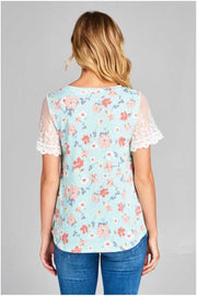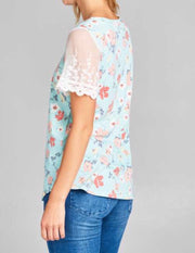 CP-E {Cuddles With You} Mint Floral Top with Lace Sleeves