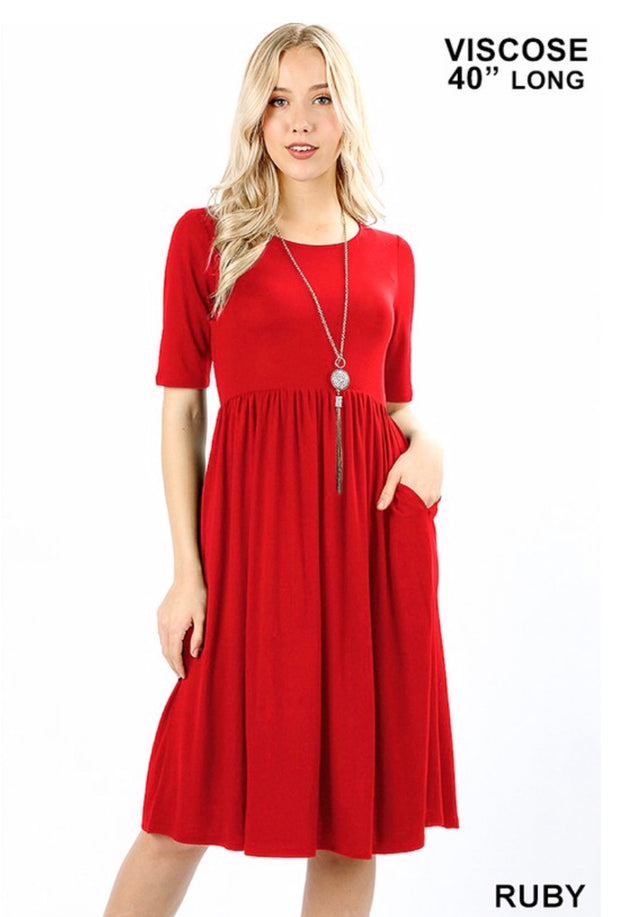 SQ-P {Take My Hand} Ruby Dress W/ Quarter Sleeves & Pockets