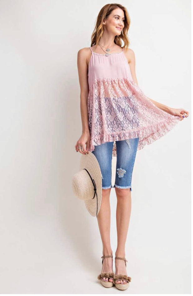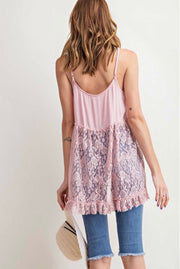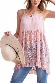 SV-A {Fierce Love} Mauve Spaghetti Strap Top with Lace