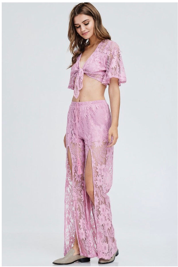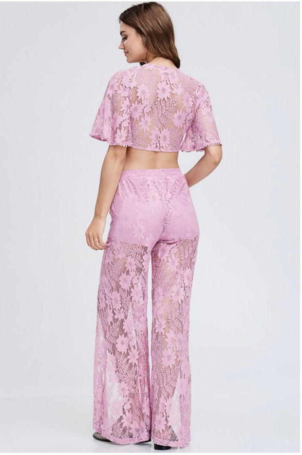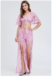SET {Life Changing} Plum Lace Open Flare Pants with BoHo Top