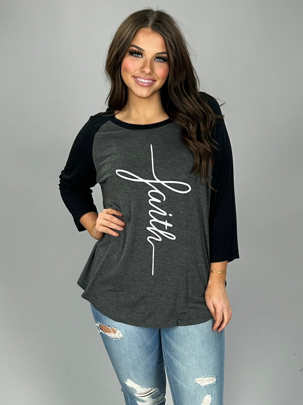 GT-I {FAITH} Charcoal & Black Raglan Tee