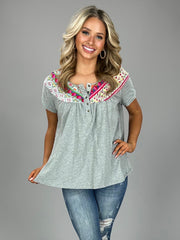 CP-D {One True Love} "UMGEE" Gray/Multi Top w/Buttons