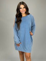 OS-i "UMGEE" Blue Mineral Washed Tunic with Cutout Sleeve