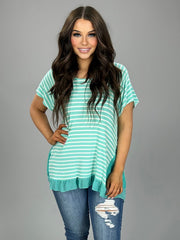 CP-M {Mint To Tell You} Striped Top with Lace Detail Sides