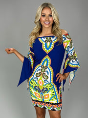 OS-B {Effortlessly Cute} Blue Tie-Dye Dress with Bell Sleeves