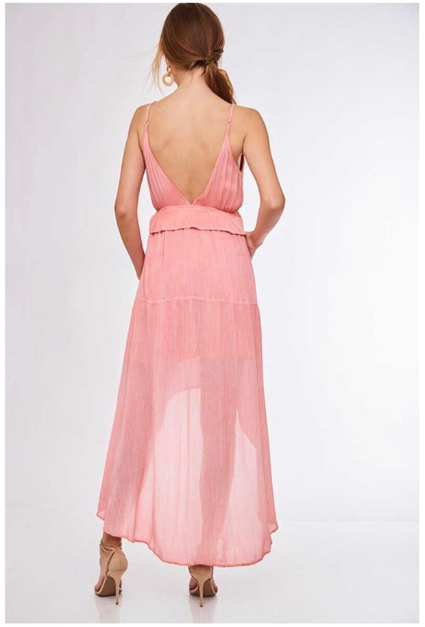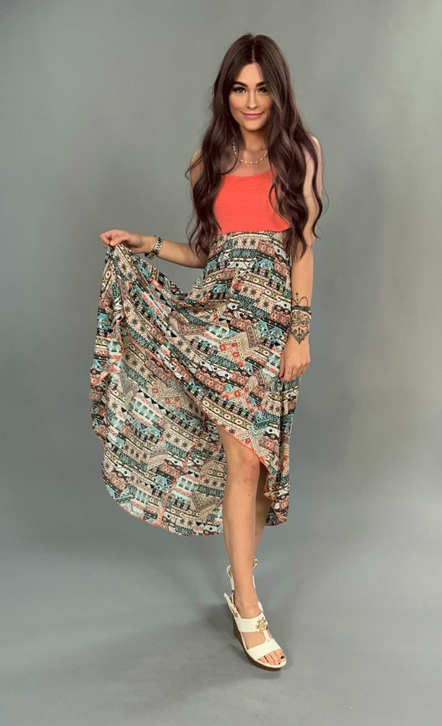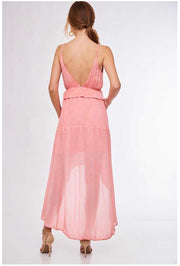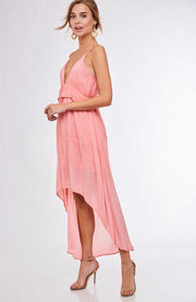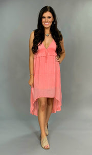 LD-B {Feel The Vibe} Coral/Multi Hi-Lo Dress Zip Side