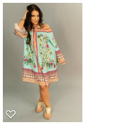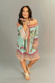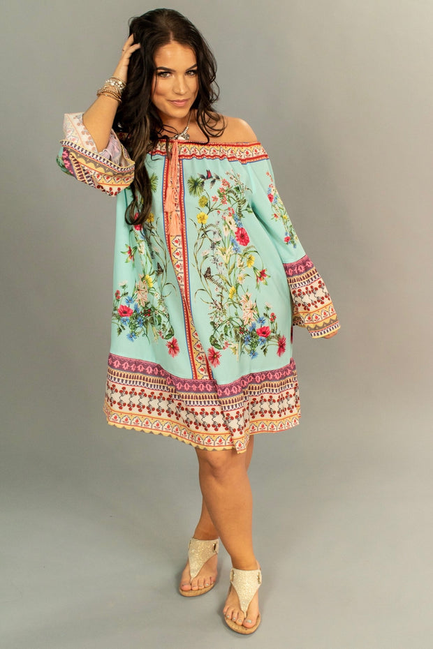 {Shabby Chic} "UMGEE" Aqua Floral Border Print Tunic Dress