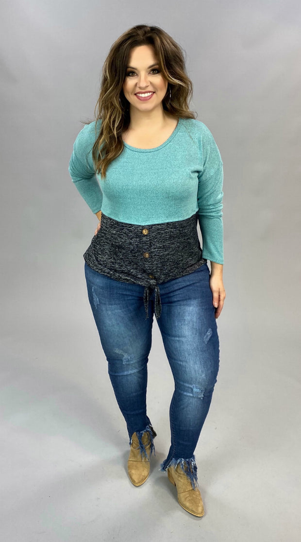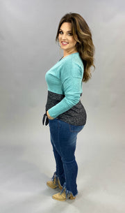CP-E {Cuddles With You} Mint Floral Top with Lace Sleeves