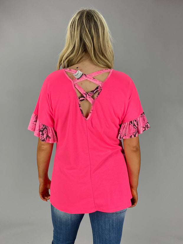 CP-D {Just A Game} Neon Pink/Snakeskin Print Top