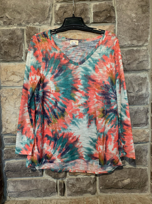 10-02 PLS-B {True Colors} Multicolored Tie Dye Knit Top SIZE S M L