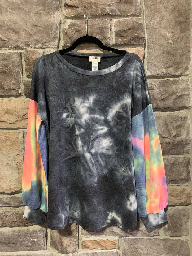 SALE! 15 PLS-B {Your True Colors} Grey Multicolored Tie Dye Top SIZE S M L XL