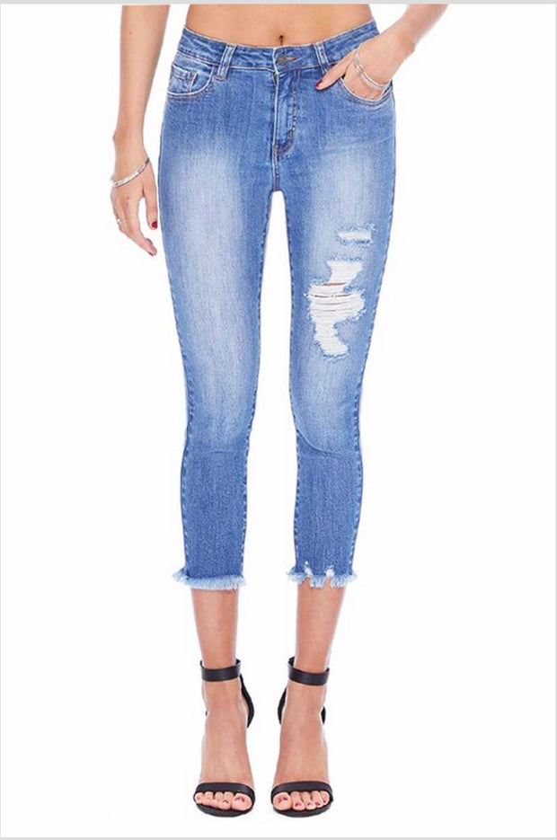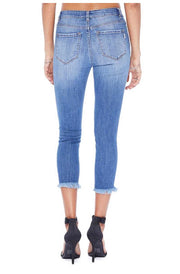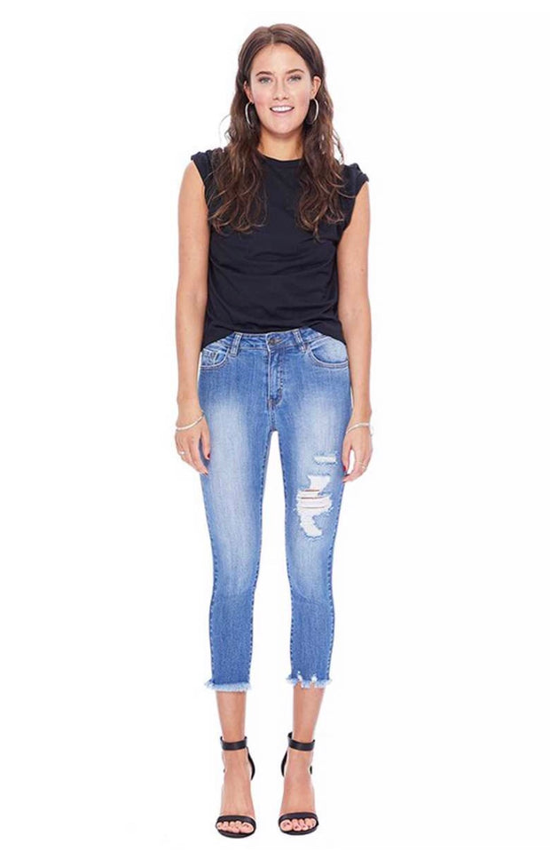 BT-B {Days Gone By} Distressed Denim Crop Jeans Frayed Hem