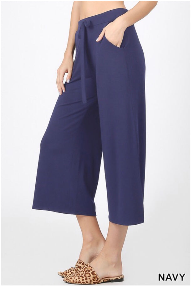 BT-M {Going Nonstop} Navy Yoga Capri Pants W/ Drawstring