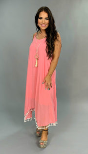 LD-C {Days Gone By} Pink Lined Dress with White Tassel Hem