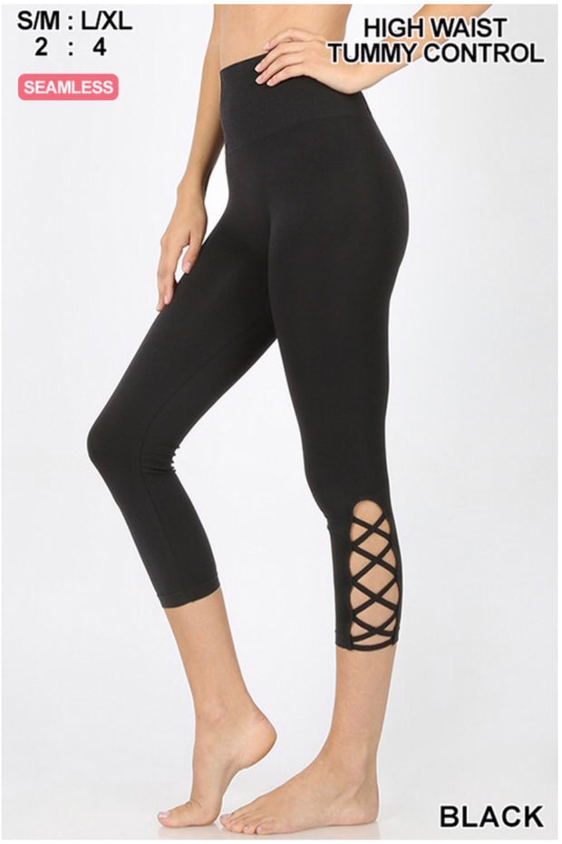 LEG-1 {I Wish I May} Black Leggings W/ Criss Cross Detail