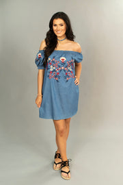 OS- N {Get This Right} Denim Dress with Embroidery