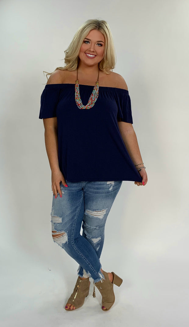 OS-Q {Love Yourself} Navy Blue Off Shoulder Top