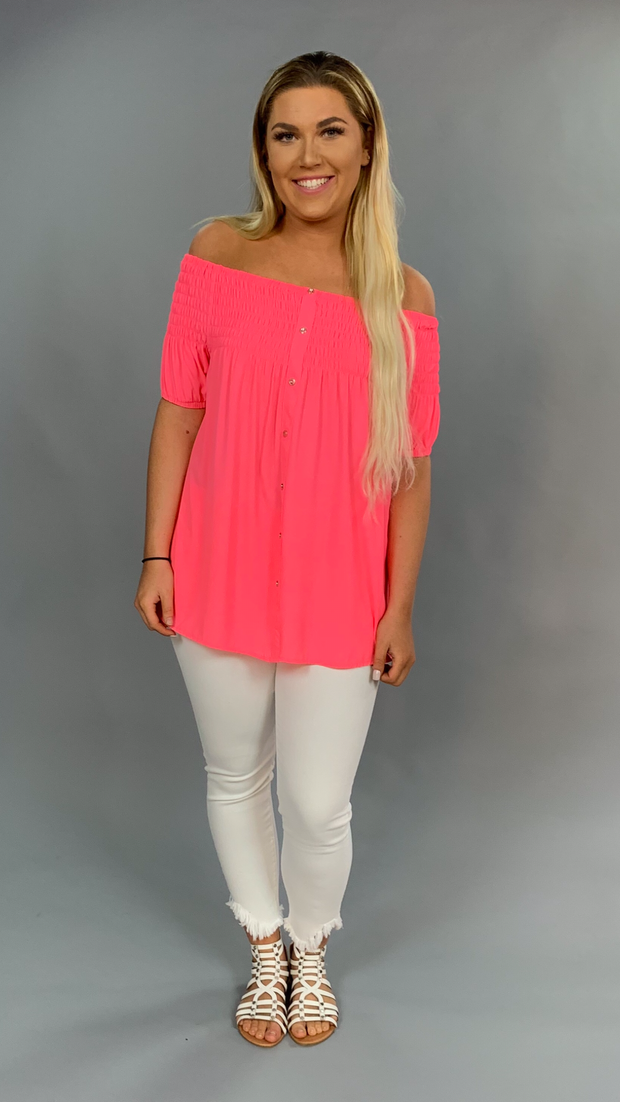 OS-T {Pop Star} Neon Pink Off Shoulder Top with Elastic Detail