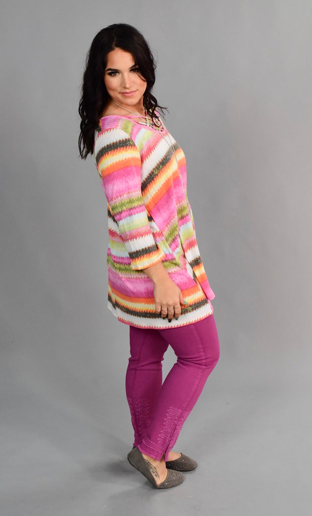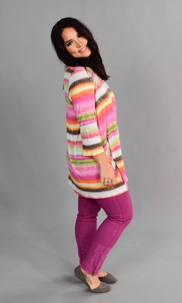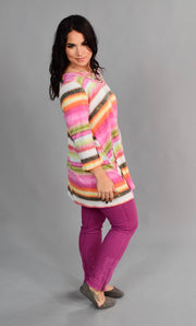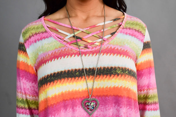 PQ-E {Dreaming Of Spring} Pink Rainbow Cage Neck Top