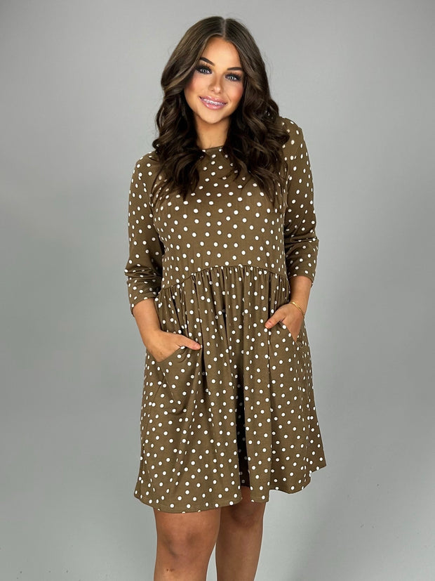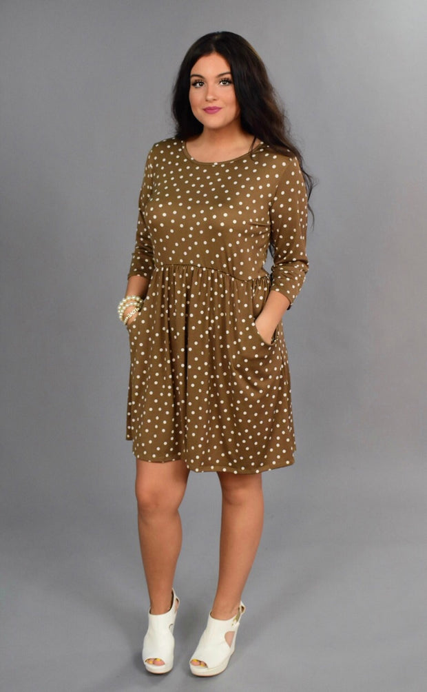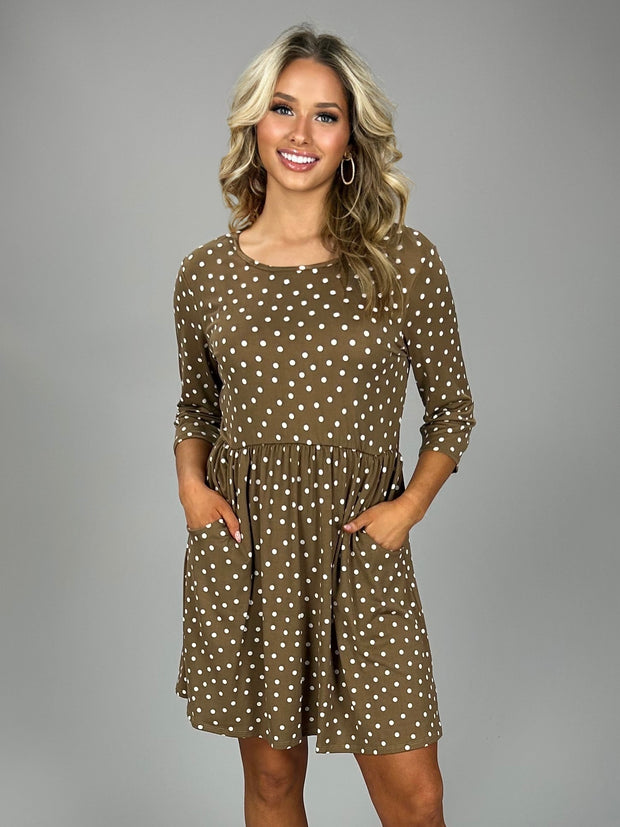 PQ-Z {Pretty Woman} Tan Polka-Dot Dress with Pockets
