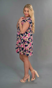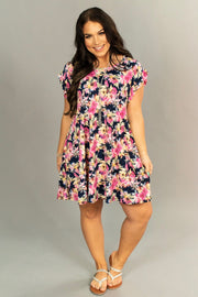 PSS-P "In Your Name" Pink/Navy Floral Ruffle Sleeve Tunic