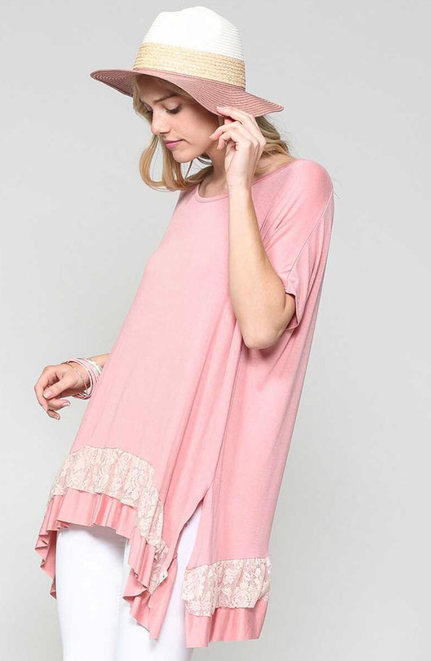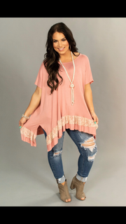 SD-A {Simple Truth} Mauve Loose-Fitting Top with Lace