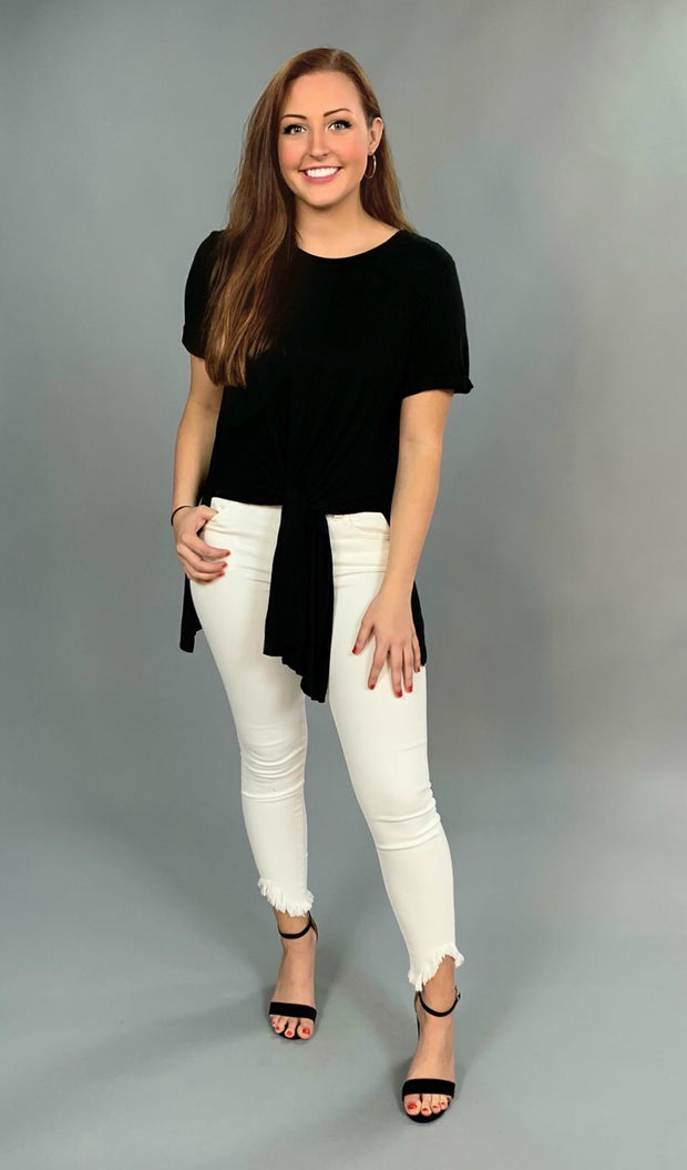 SSS-J {Strike A Pose} Solid Black Hi-Lo Top with Front Tie
