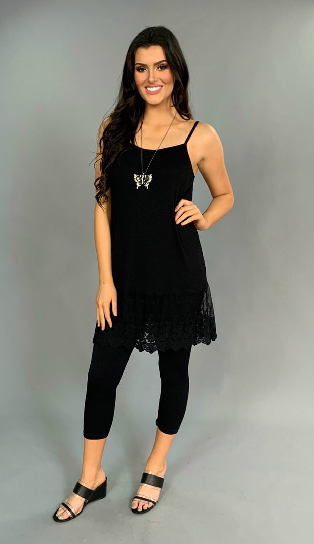 SV-V {Just For Fun} Long Black Cami Top Extender with Lace